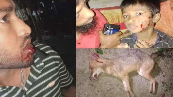 স্থানীয় সূত্রে জানা যায়, শনিবার মাগরিব নামাজের পর মসজিদ থেকে মুসল্লিরা বের হলে একটি শিয়াল দৌড়ে এসে একজনের পেছনে কামড় দেয়। পরপরই আরেকজনের পায়ে কামড় দেয় শিয়ালটি। পরে শিয়ালটি দৌড়ে পালানোর সময় সামনে যাকে পেয়েছে তাকেই কামড়িয়েছে। এসময় শিয়ালের আচরণ ছিল অস্বাভাবিক ও পাগলাটে ধরনের। পরে এলাকাবাসী একত্রিত হয়ে রাতেই শিয়ালটিকে মেরে ফেলে।