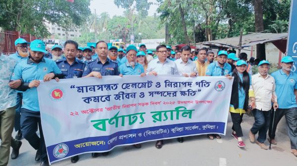 “মানসম্মত হেলমেট ও নিরাপদ গতি, কমবে জীবন ও সম্পদের ক্ষতি” প্রতিপাদ্যকে সামনে রেখে বর্ণাঢ্য আয়োজনে কুমিল্লায় জাতীয় নিরাপদ সড়ক দিবস উদযাপিত হয়েছে।
